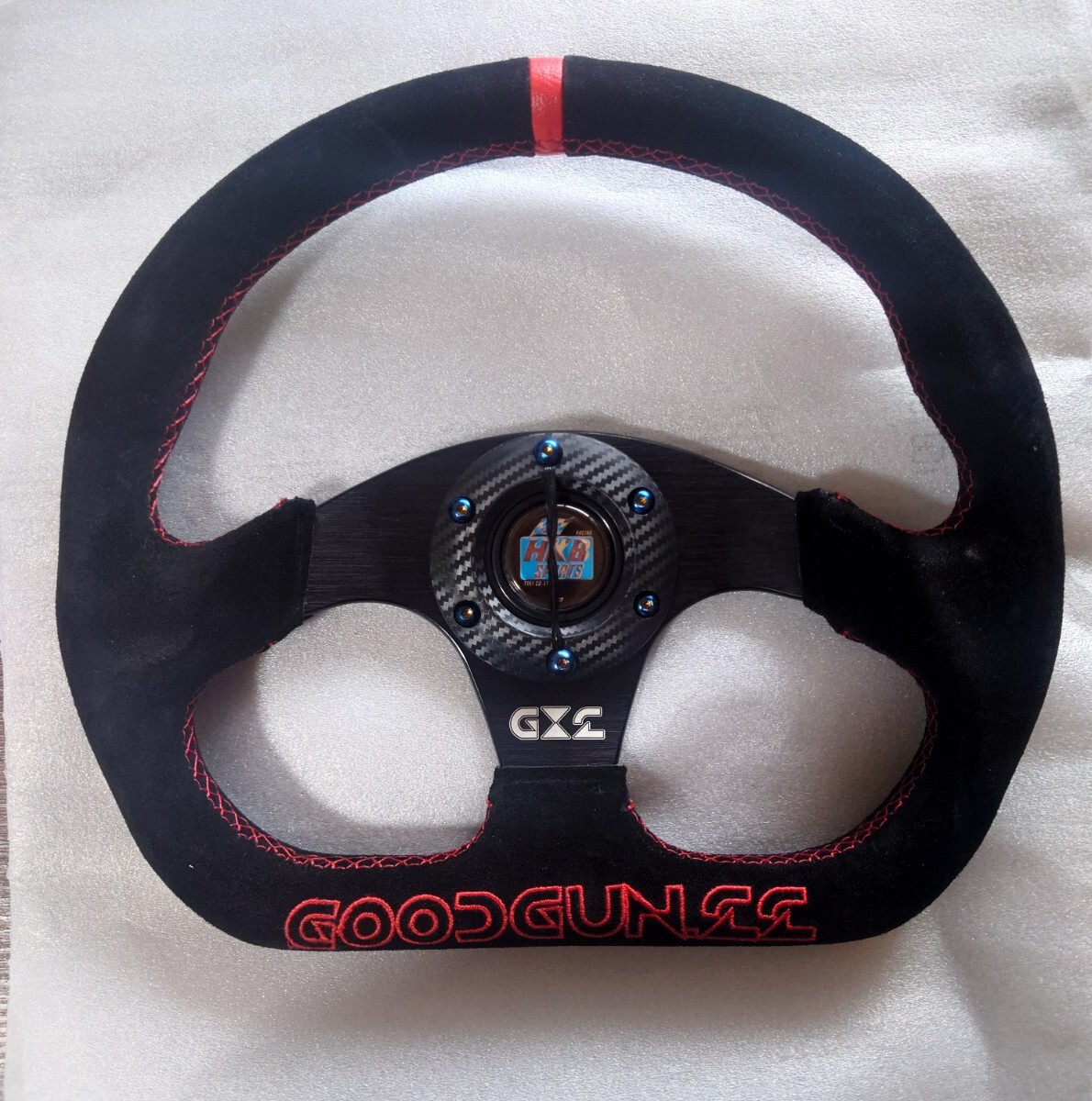 - 【 中 古 品 】GOODGUN グッドガン スェード ステアリング 33パイ 13インチ Dシェイプ モモ穴 MOMO バックスキン ハンドル 倒産 絶版品