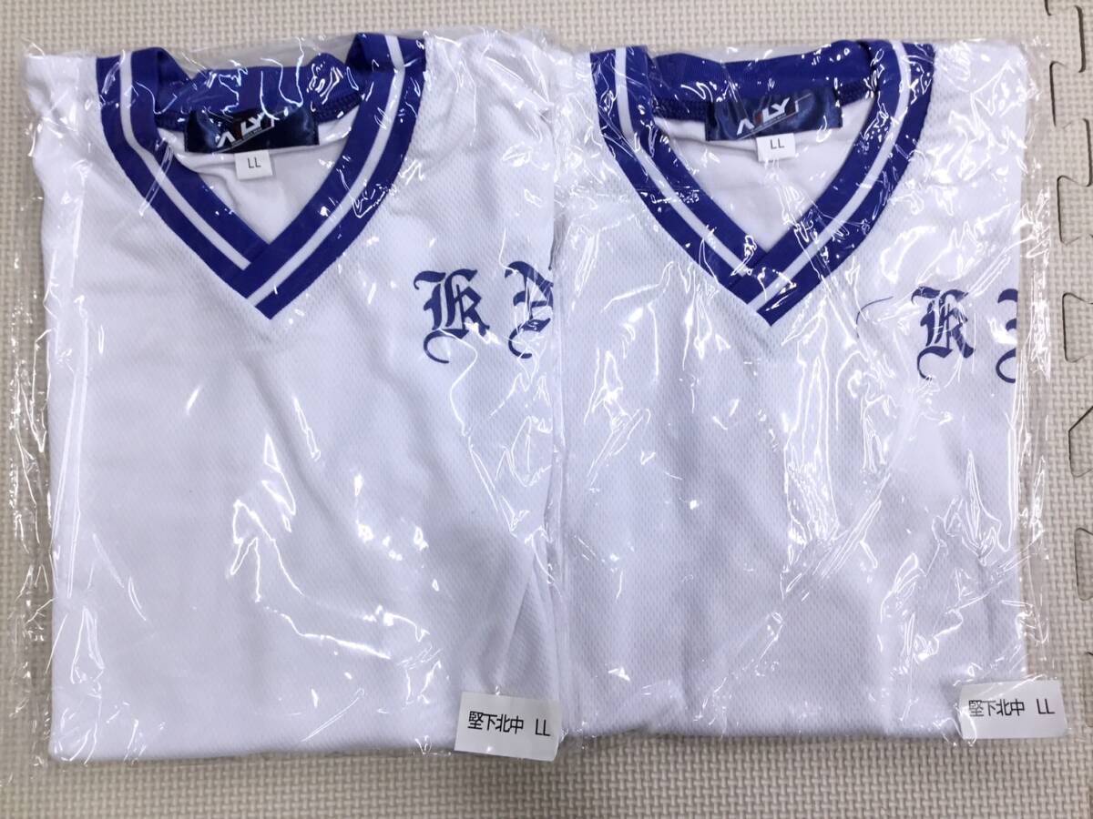 > S1500 新品【柏原市立 堅下北中学校】(旧)スクールスポーツウェア サイズ LL 2枚/AILY/半袖/V衿/白x青/指定/男女兼用/中学生/大きめサイズ