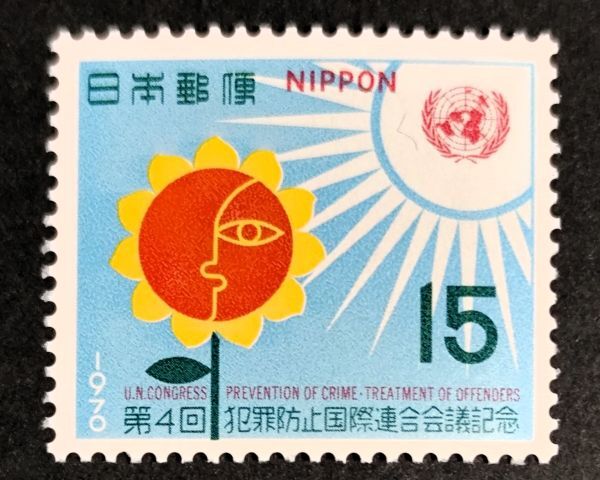 > [25090406]【第4回犯罪防止国際連合会議記念】単片「ひまわり 国連のマーク」15円 1970年発行 美品