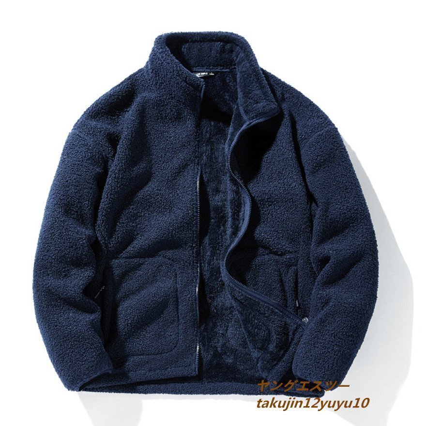 - フリースジャケット 新品 メンズ アウトドアジャケット 裏ボア ジャンパー 防寒 アウター 運動 コート ブルゾン 四色選択 ネイビー XL