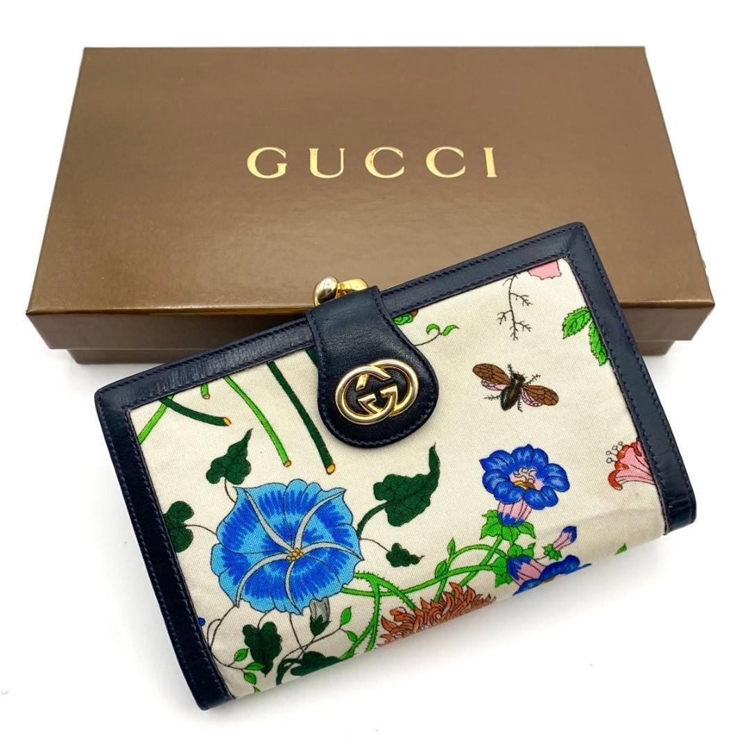 - 美品 グッチ がま口 財布 フローラ 花 フラワー インターロッキング 金具