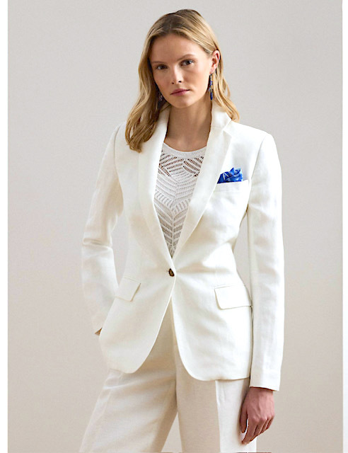> ☆二点落札で送料無料!R40 定価46,200円【美品】ローレン ラルフローレン リネンブレンド ブレザー 2 白 ホワイト テーラードジャケット