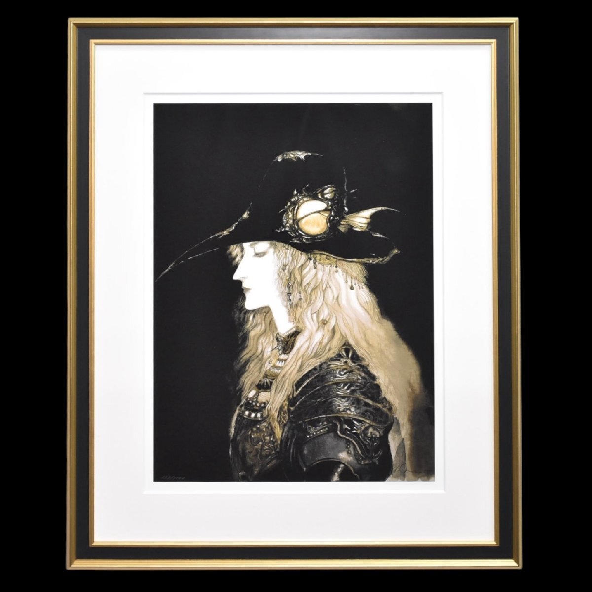 > (1-30756) 天野喜孝 肖像 137/1000 シルクスクリーン 刷込みサイン 証明シール かぶせ箱 作品保証書 絵画 額装 真作【緑和堂】