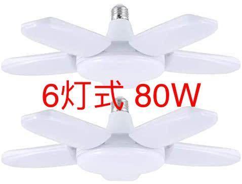 > 2個セット 6灯式 80W LEDシーリングライト ガレージライト led E26/E27 LED電球 昼白色 6500K ペンダントライト 天井照明 ダイニング