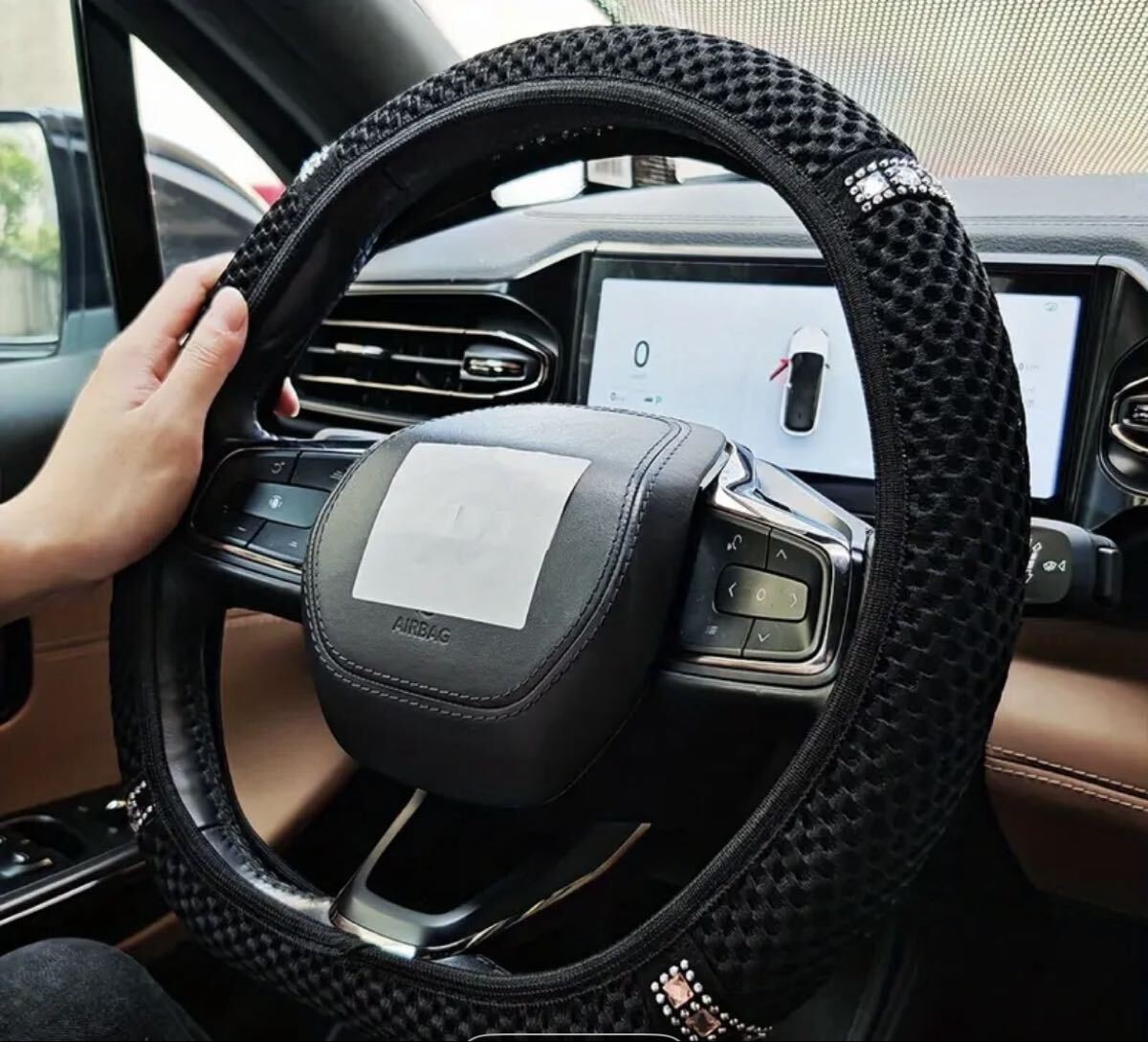 - ステッチ付きラインストーン石、目を見張る人工ダイヤモンド装飾で車を目立たせる ハンドルステアリングカバー 滑り止め O型