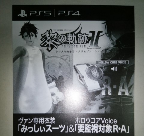 > PS5/PS4 英雄伝説 黎の軌跡II -CRIMSON SiN- 初回 特典 DLC衣装「ヴァン専用みっしぃスーツ」+ホロウコアVoice【要監視対象R・A】 コード