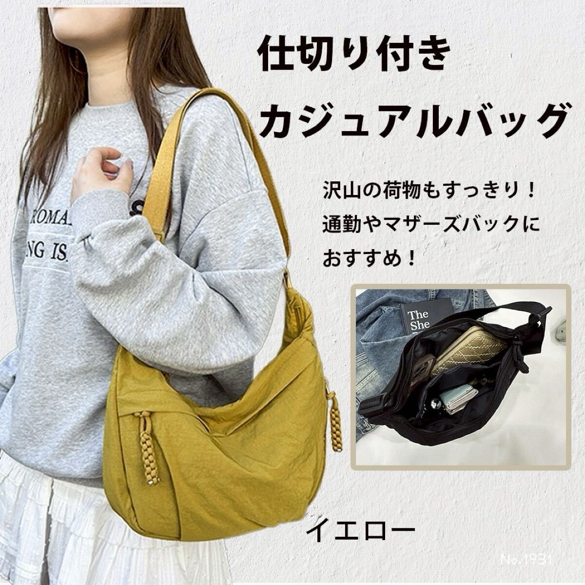 - 新品!大容量 カジュアルバッグ イエロー 仕切り付き シンプルバック