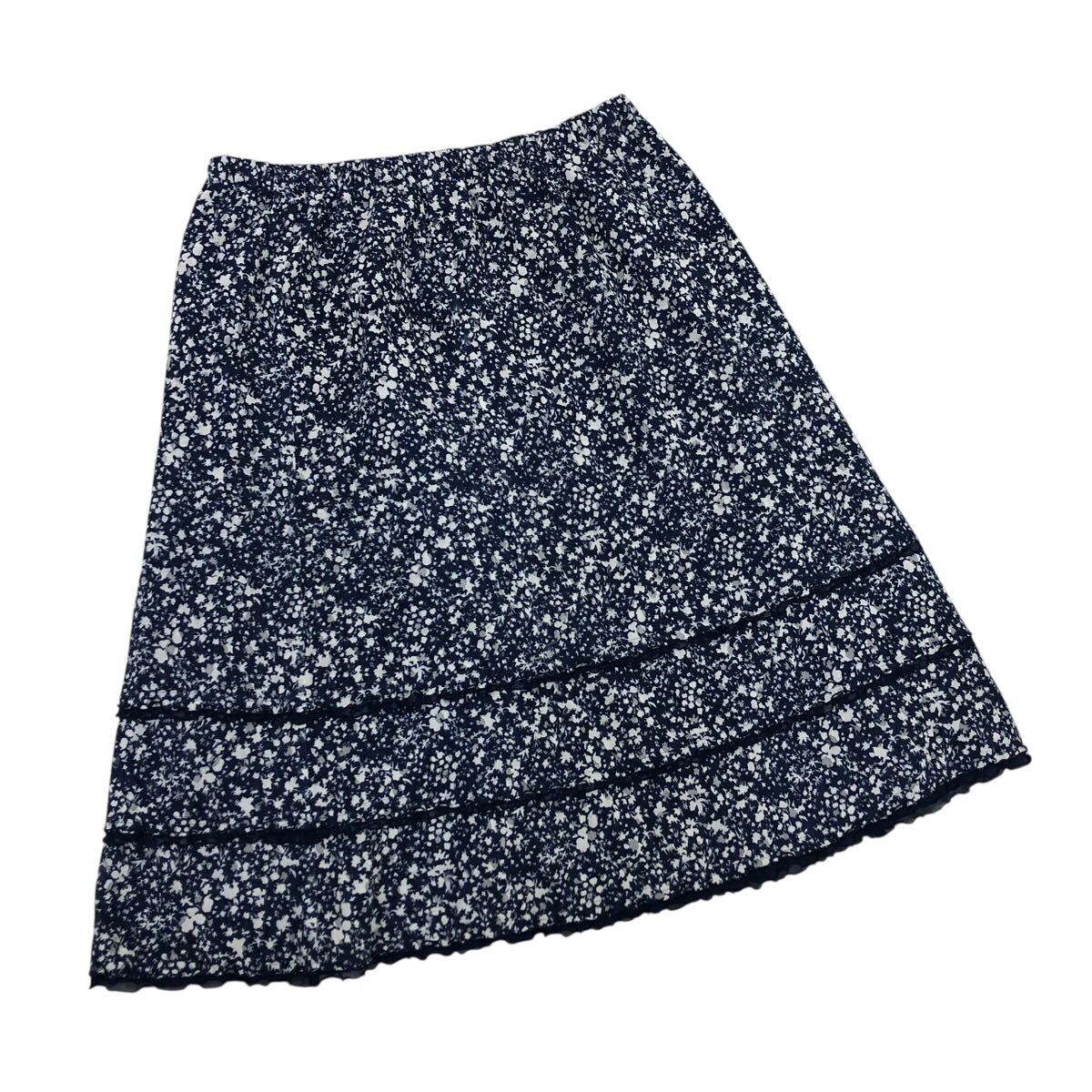 - 9Nm321-33 大きいサイズ Leilian White label レリアン 花柄 ひざ丈 スカート ウエストゴム ストレッチ ボトムス ネイビー レディース 13+