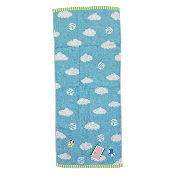 タオル一面が空のデザインとなっており、タケコプターで飛んでいるドラえもんのアップリケが可愛いフェイスタオルです。ふわふわした無撚糸で触りごごちの良いボリュームのあるタオルに仕上がっています。サイズ違いをセットにしてお祝いごとの贈り物にもオススメです。