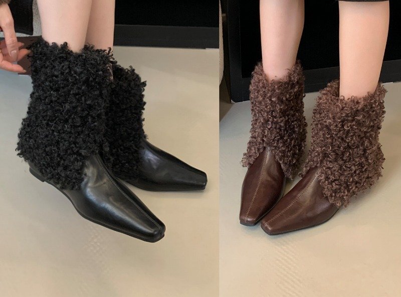 > ブーツ ファー付き 切り替え シンプル 【38】23.5~24cm ブラック