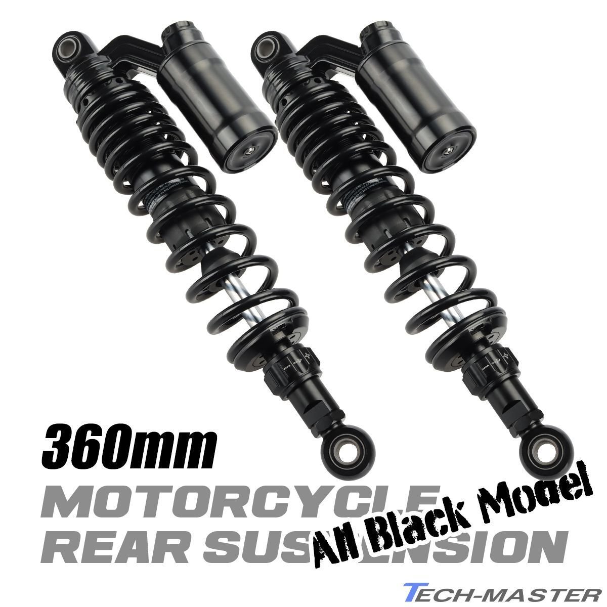- バイク リアサスペンション オールブラックモデル 360mmブッシュ取付 リザーバータンク付き プリロード無段階 車高調整 左右セット SZ999