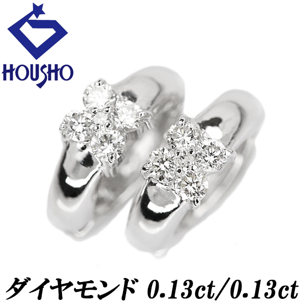 > ダイヤモンド イヤリング K18ホワイトゴールド フープ 花 フラワー 植物 ボタニカル 送料無料 中古 宝正 902506