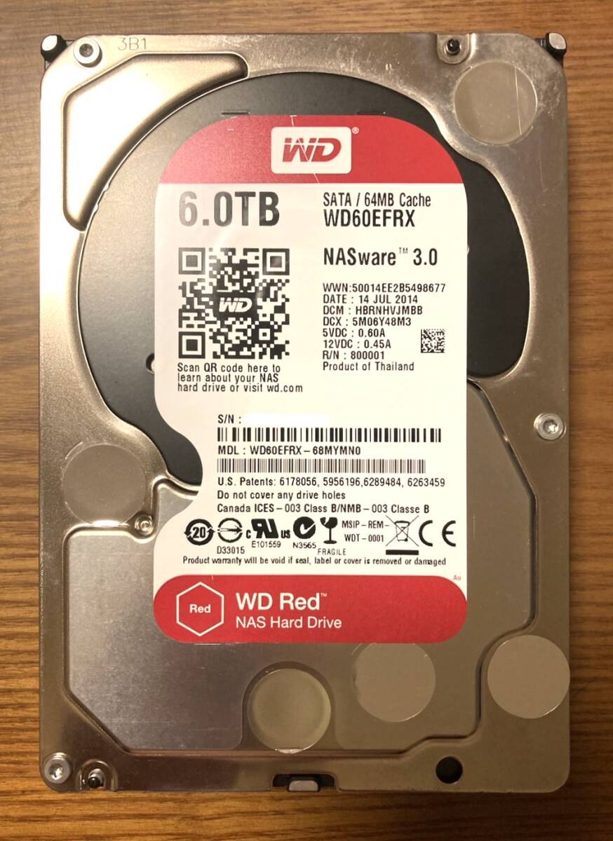 - 【状態◎】Western Digital ウェスタンデジタル Redシリーズ WD60EFRX 3.5インチHDD 6TB(NAS向けHDD)