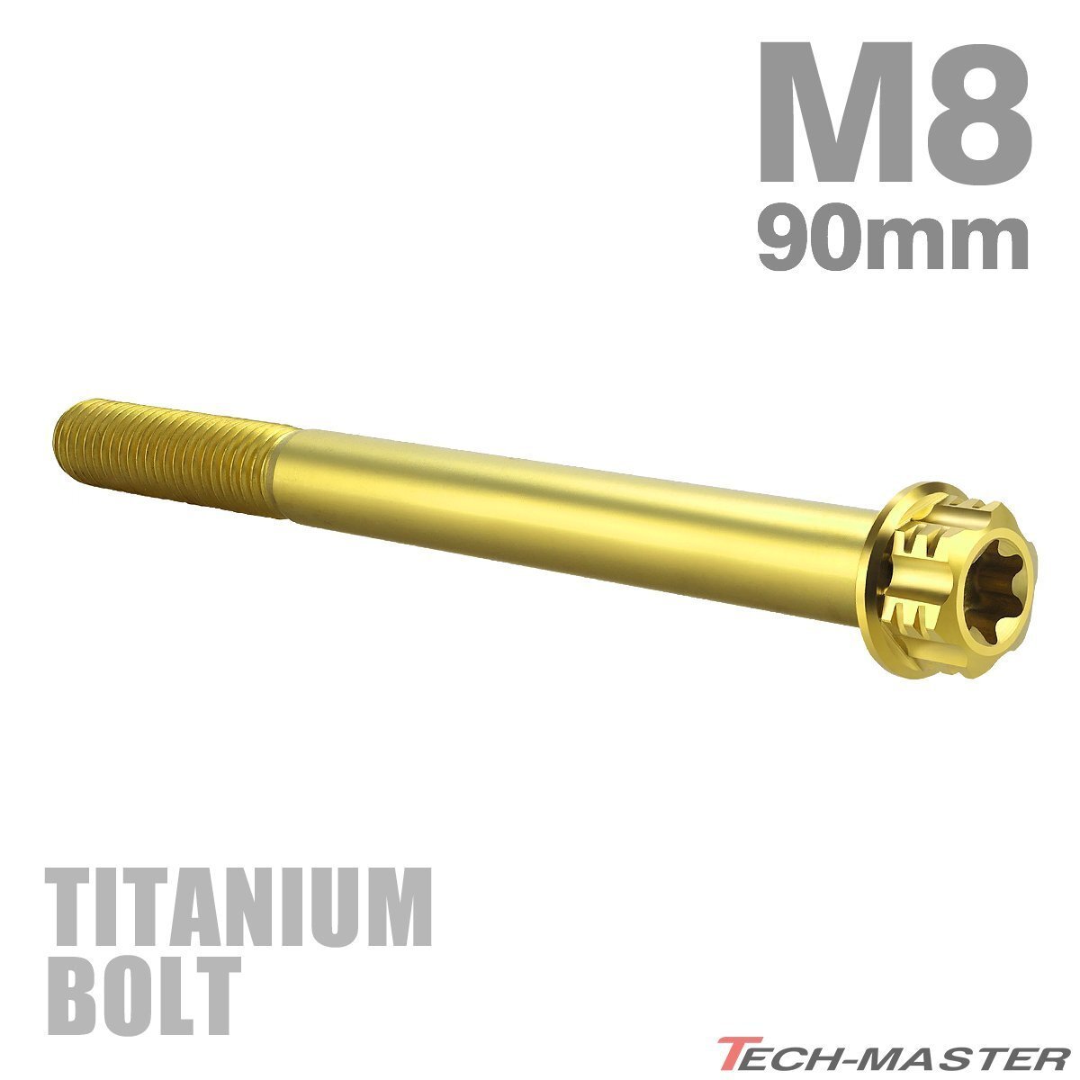 - M8×90mm P1.25 64チタン合金 ヘキサゴン トルクスヘッド キャップボルト フランジ付き ゴールドカラー 1個 JA1320