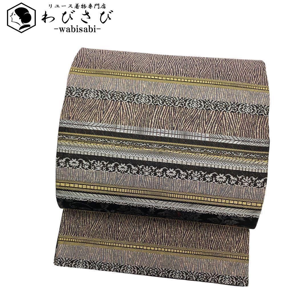 - 袋帯 モダンな横段織模様 花唐草模様 金銀糸 ガード加工 O-3256 着物 きもの kimono 和服 和装 中古 リサイクル着物 【送料無料】