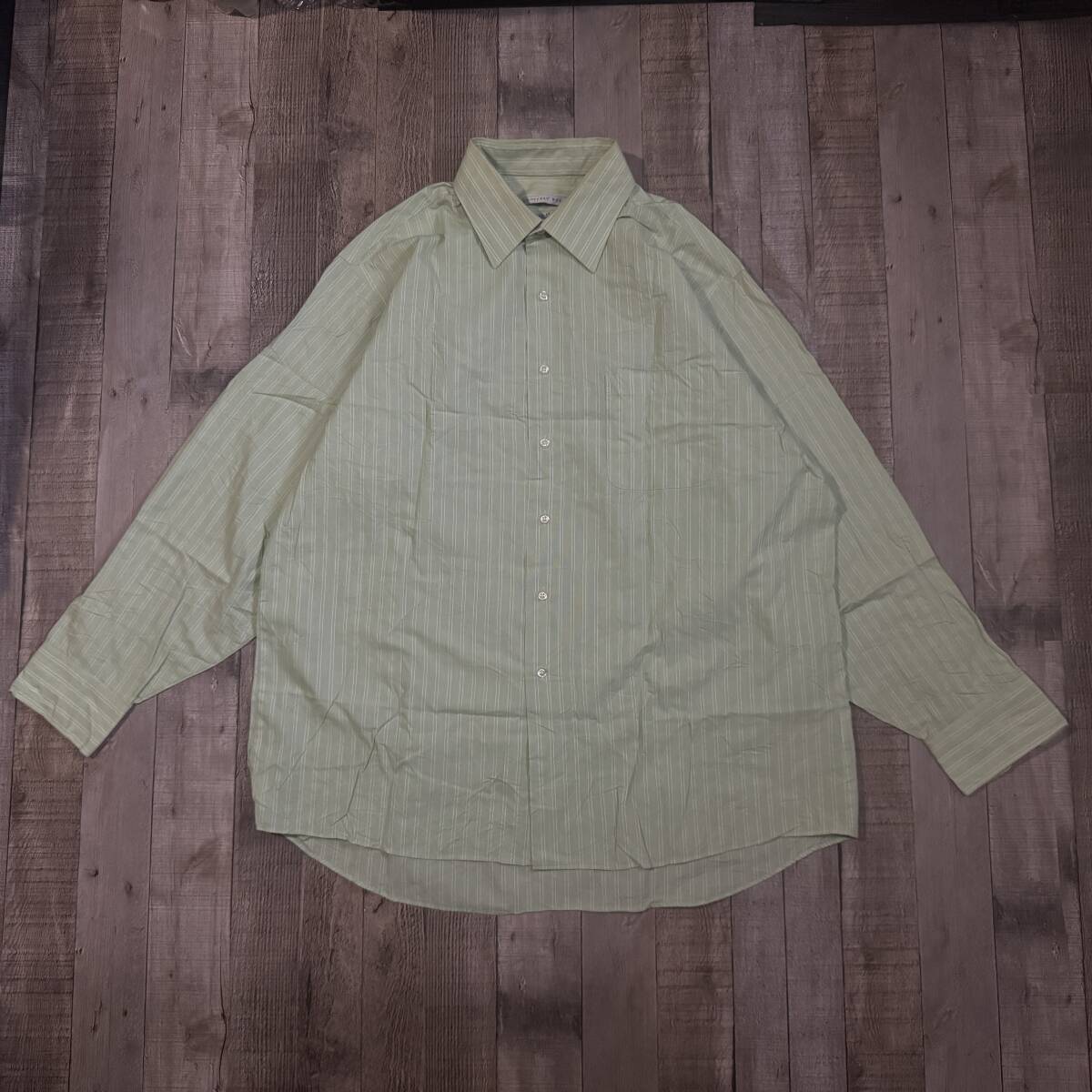 > 即決・クリックポスト発送・輸入古着・GEOFFEREY BEENEのワイドカラーシャツ・黄緑・171/2・(日本の3Lに近いサイズ感です)