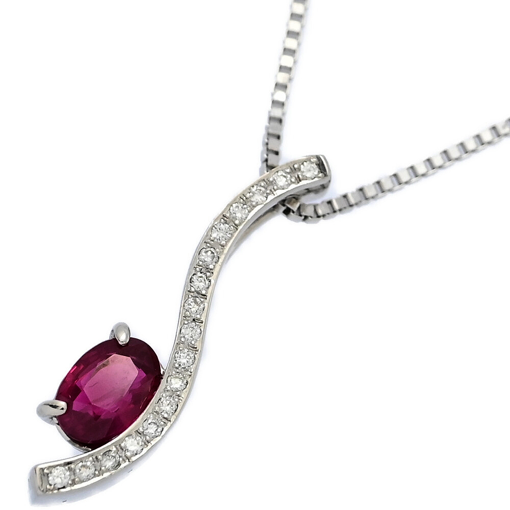 - ホワイトゴールド ルビー・ダイヤモンドネックレス・ペンダント/K18WG/750-4.4g/RU1.03ct/FD:0.11ct/翌日配送可■588014