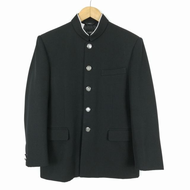 - 学生服 学ラン 160A 男子 上着 ウール混 ラウンドカラー カシドス 黒 中古 ランクB a3 JJ5437