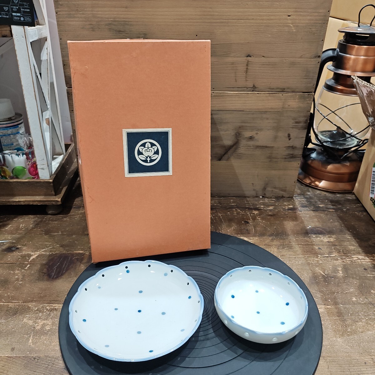 - 90525 日本古風 たち吉 水玉柄アイスクリーム皿スプレー付3枚セット