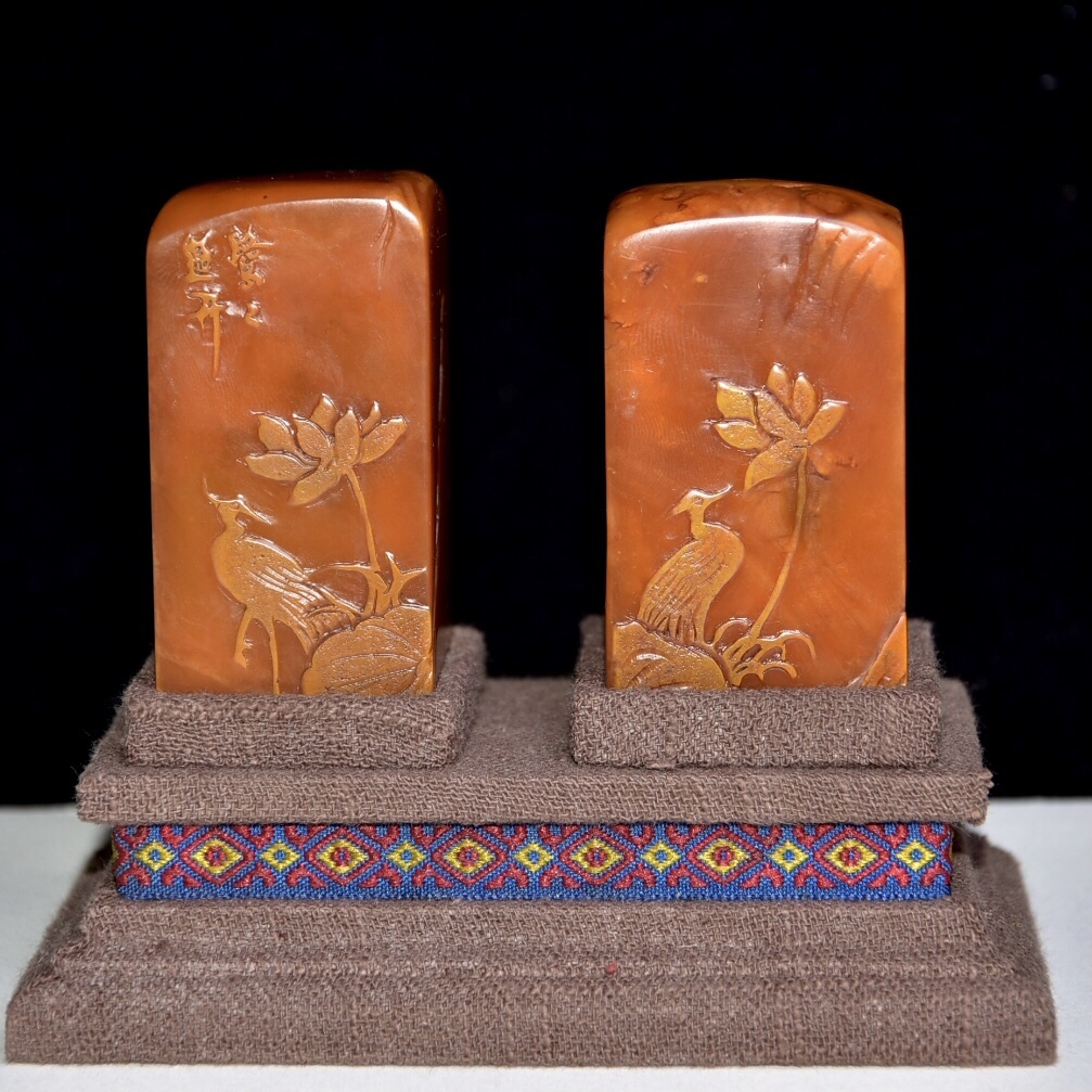 - 旧 清代 寿山石 田黄石 套章 古印章 原石原色 時代物 文房具 中国古美術 古賞物 古置物 唐物 S79