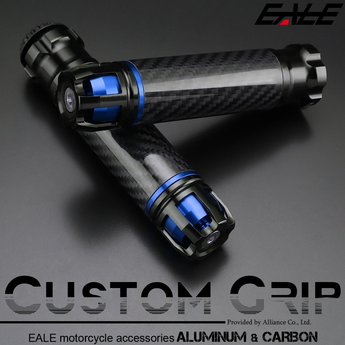> バイク グリップ カーボン アルミ バーエンド付き ハンドル 22.2mm用 ブルー 左右セット カスタム ドレスアップ S-576-B