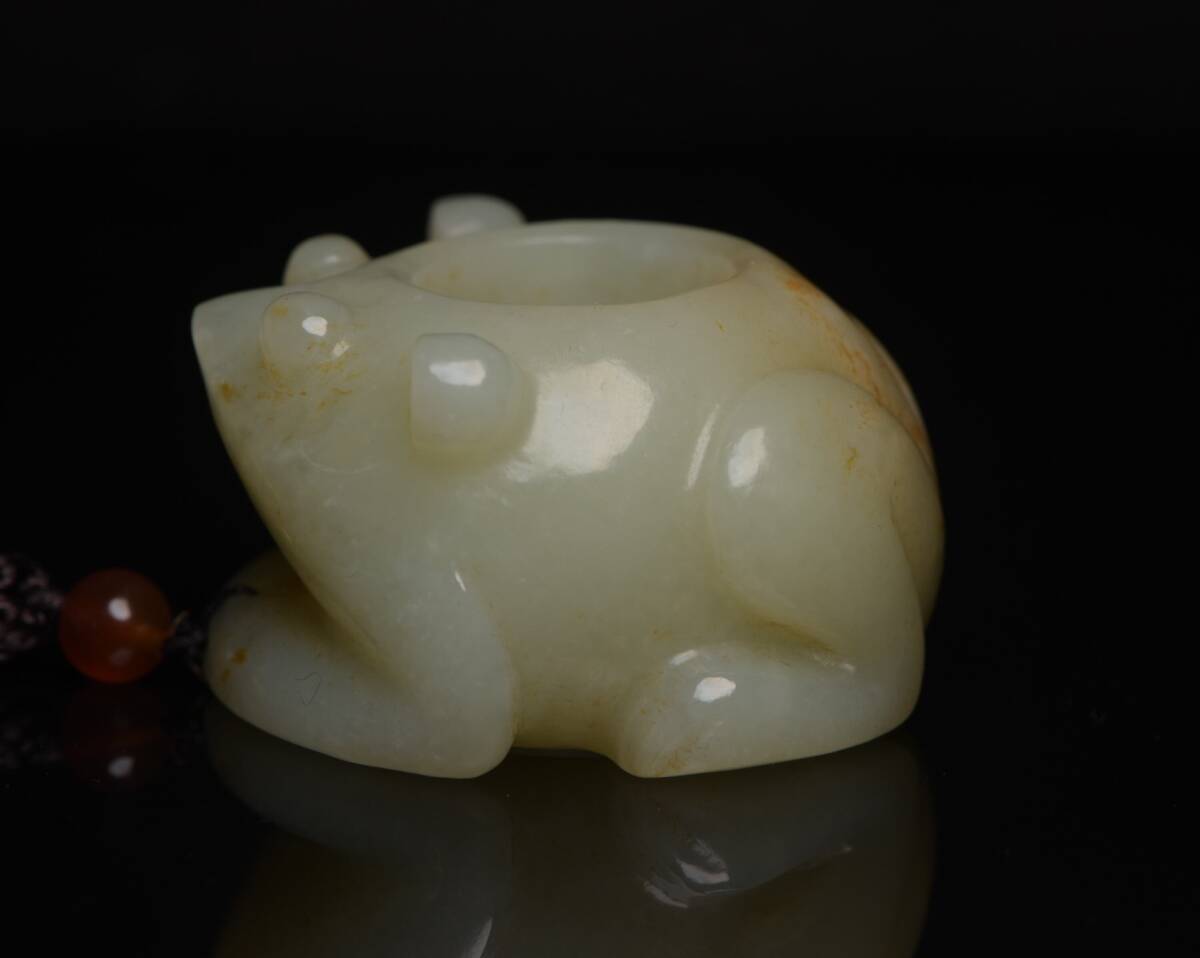 - 『館蔵珍品 和田玉製 細密彫 青蛙 置物 賞物』稀少珍蔵品 古賞物 貴重物品 収蔵品 中国古美術 時代物 古董品