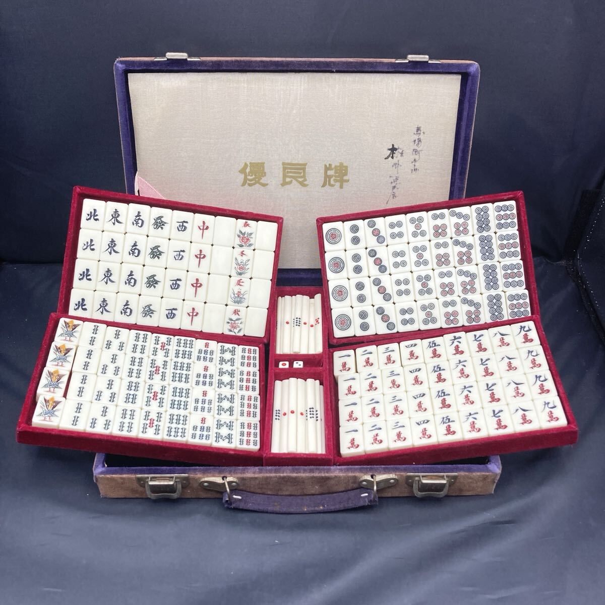 - m0831701-20 昭和レトロ 麻雀牌 役満 麻雀パイ 背竹牌 麻雀 麻雀セット 点棒付 麻雀パイ 収納ケース付き 携帯便利 サイコロ 家庭用 中古品