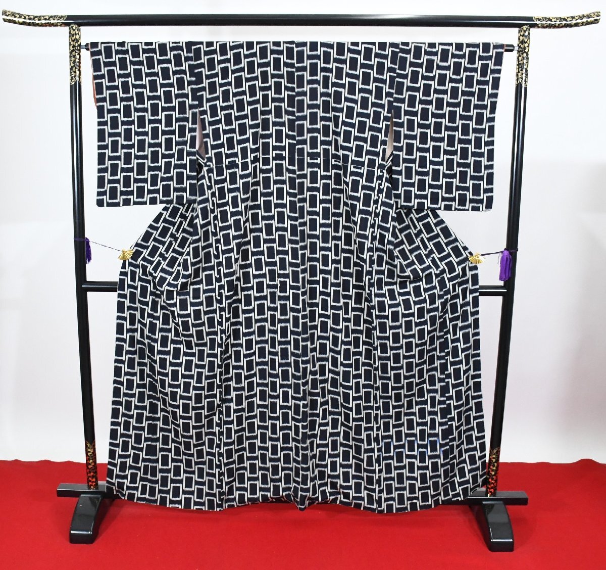 > 小紋 着物 袷 縮緬 ちりめん正絹 四角 身丈154.5cm 裄丈64.5cm ★ kb-6999 桜庭呉服店