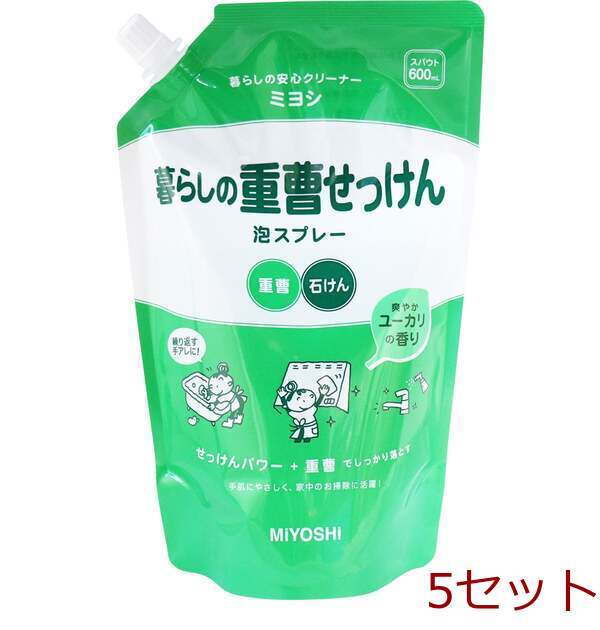 - 暮らしの重曹せっけん お掃除泡スプレー ユーカリの香り 詰替用 600mL 5個セット