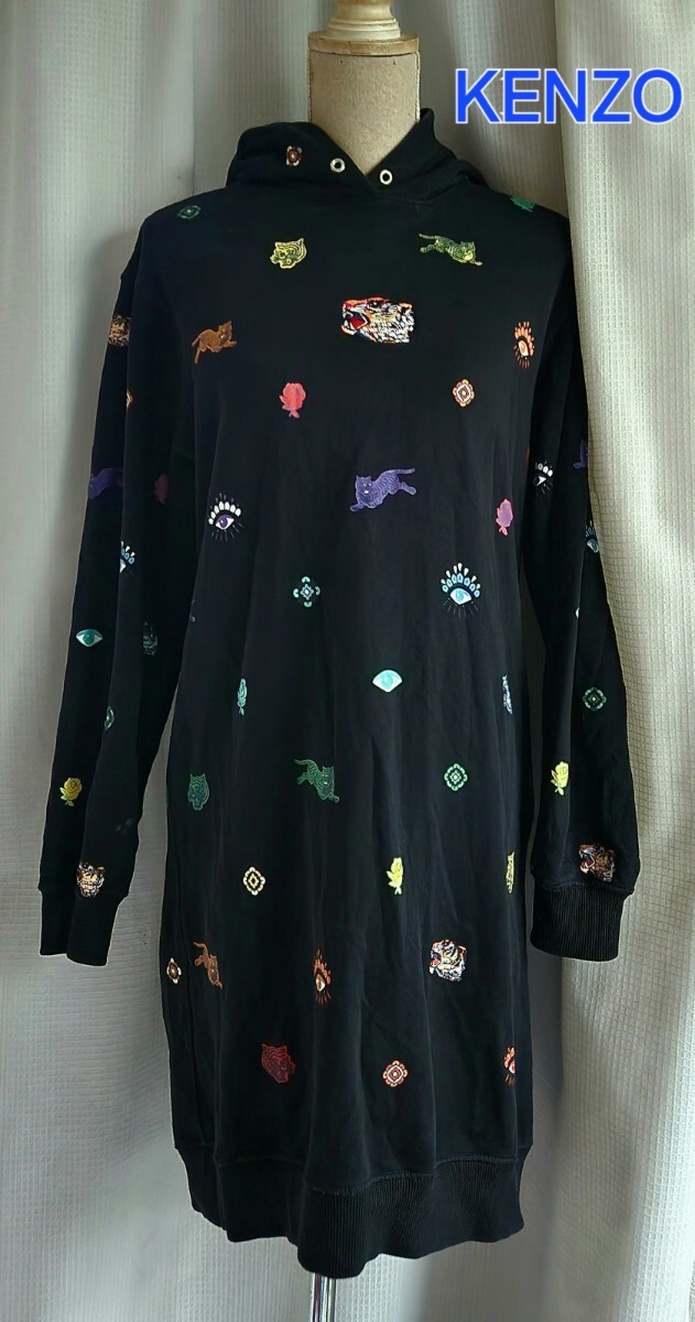 - 大変美品 KENZO フード付きパーカーワンピース 黒 寅 コットン