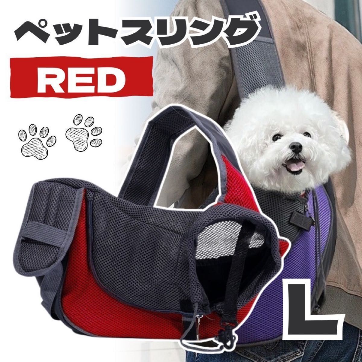 - ペットスリング 犬 猫 キャリーバッグ 抱っこ バッグ ショルダー お出かけ お散歩 レッド Lサイズ