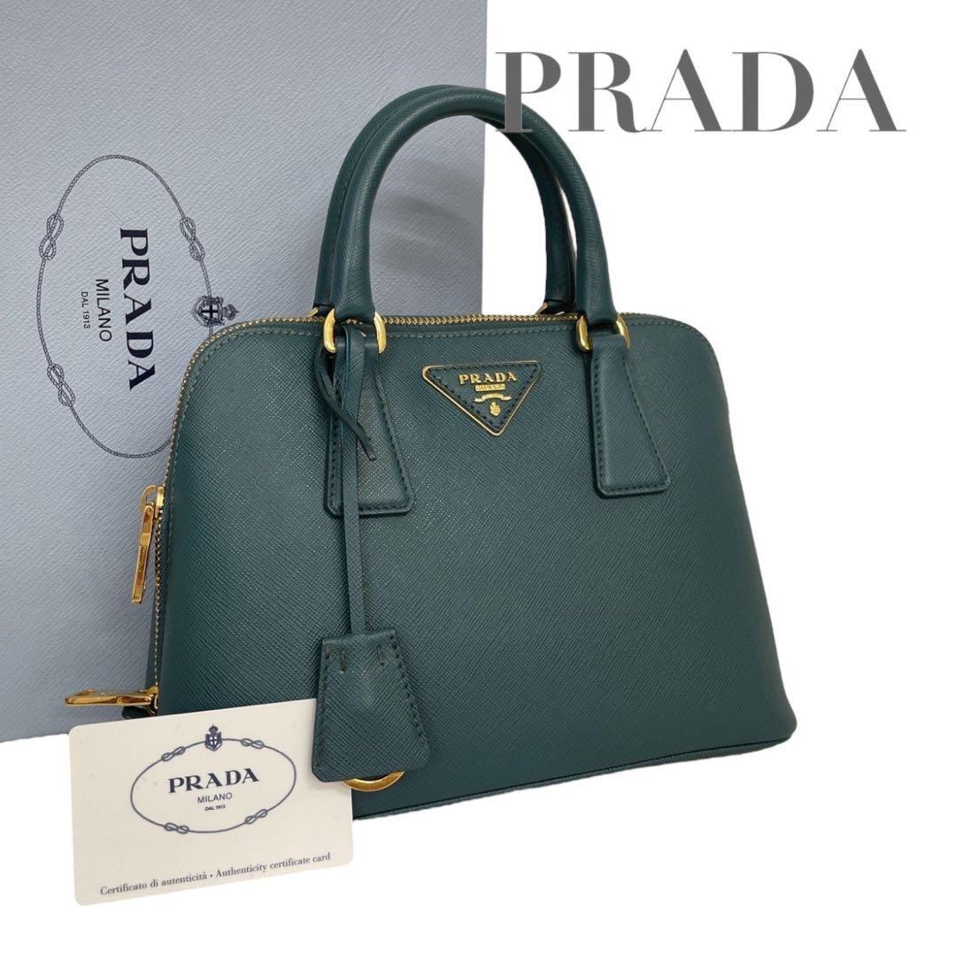 - 希少 プラダ プロムナード サフィアーノレザー グリーン ハンドバッグ 5052