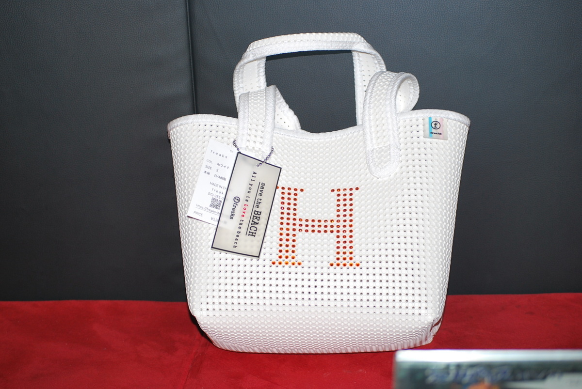 - 現品限り (save the BEACH)freaksライトバッグ オフホワイト Sサイズ スワロフスキー文字H