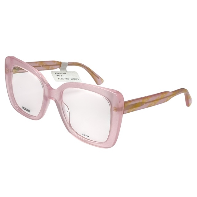 - モスキーノ MOS614 35J 140 52□19 眼鏡 メガネ アイウェア スクエアフレーム バタフライ フルリム ピンク アセテート ロゴ MOSCHINO
