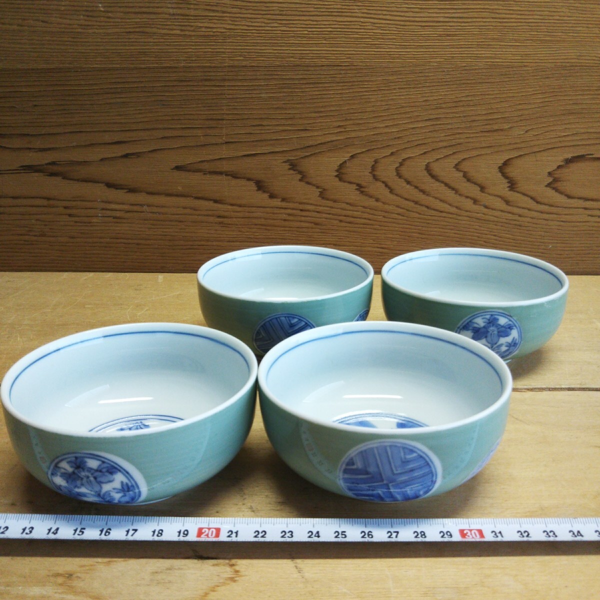 - 25090604 有田焼 緑彩丸紋 福幸作 小鉢4客セット グリーン 和食器 小鉢 有田焼
