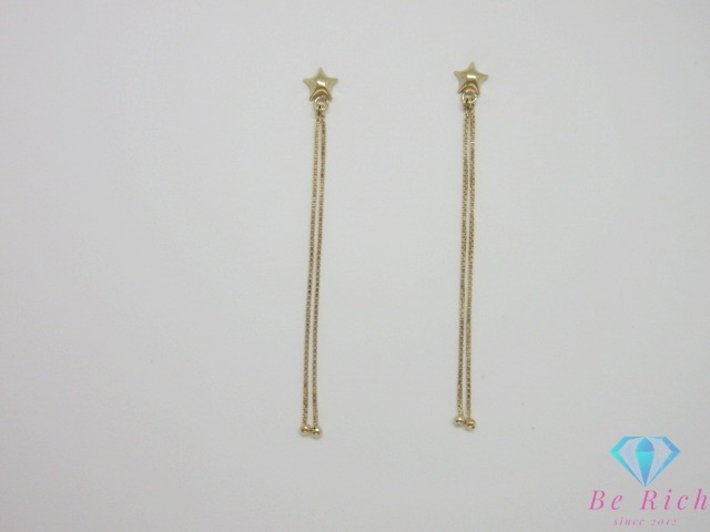 > K18 YG スター 星 モチーフ チェーン デザイン スタッド ピアス イエローゴールド 18金 750 宝石 アクセサリー 【中古】th13360