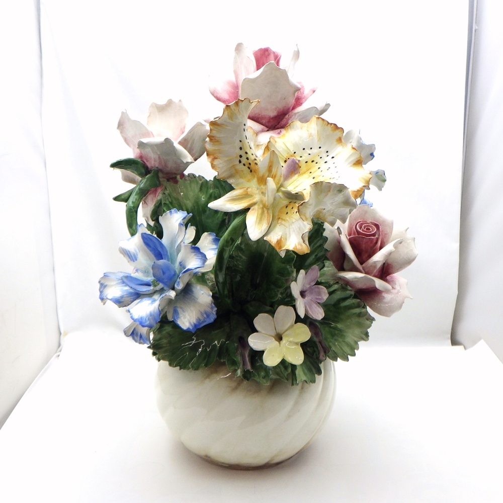 > SI-138 イタリア製 カポディモンテ 陶花 陶器 H35cm 中型 置物 インテリア アンティークショップ保管品 デッドストック ヴィンテージ