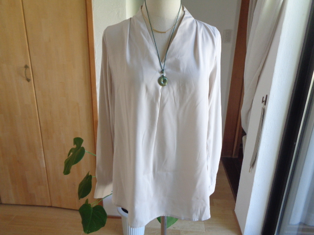 - DouDou V開き タックデザイン 長袖ブラウス ニュアンスカラー スッキリ見え 微光沢☆ 38 美品(^^♪