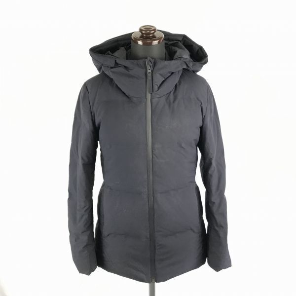 - ユニクロ★シームレス/高比率90%ダウンジャケット【レディースXS/紺】フード/リブ袖/ハイネック/内ポケット/コード穴付き◆BA869W