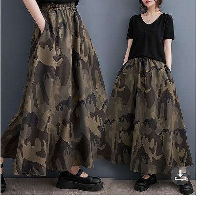 - 新品 大きいサイズ迷彩柄 Aライン ロングスカート ゆったり マキシ丈夏秋レディース