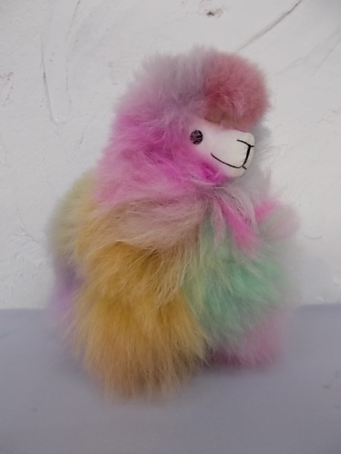 - ベビーアルパカ毛 100% アルパカ ぬいぐるみ 虹色 レインボー ペルー 15cm