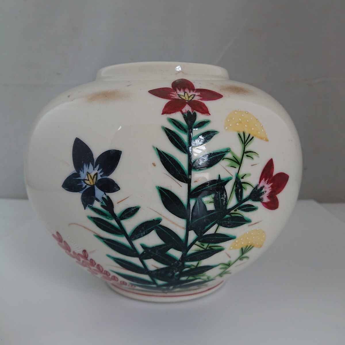 > 【花瓶】九谷焼 花器 フラワーベース 壺 箱無し 陶器 工芸品 当時物 現状品 ぷらみ 0907 33
