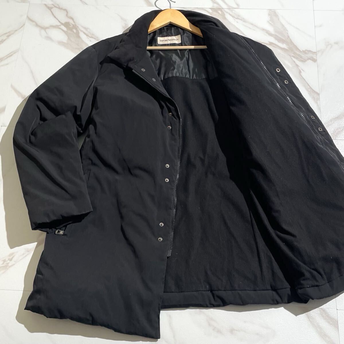 > 美品 Lサイズ EMPOLIO ARMANI ダウンジャケット ダウンコート ブラック 黒 ナイロン フェザー スタンドカラー メンズ 紳士服 秋冬