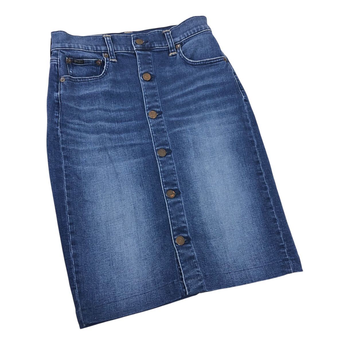 - 9Nm322-66 POLO RALPH LAUREN ポロラルフローレン フロントボタン デニムスカート スカート ボトムス インディゴ レディース 実寸参考