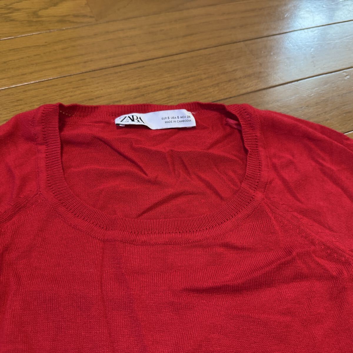 - ●ZARAザラベーシック薄手ニット朱赤色S