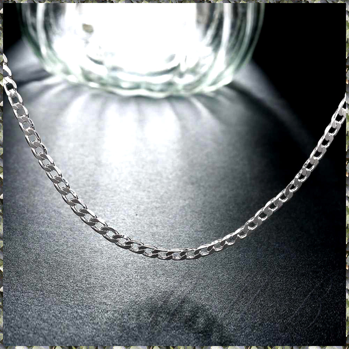 - [NECKLACE] 925 Sterling Silver Plated 6面 カット 喜平チェーン スリム フラット シルバー ネックレス 3.5x450mm (5.5g)