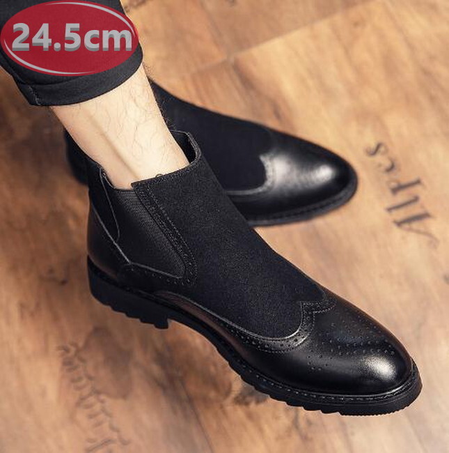 > サイドゴア メンズ ビジネス レザー シューズ ブラック 24.5㎝ 革靴 靴 カジュアル 屈曲性 通勤 軽量 インポート品【n152】