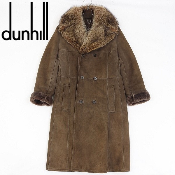- 【HA43】英国製◆dunhill ダンヒル リアルムートン ロング ダブル コート ブラウン 40