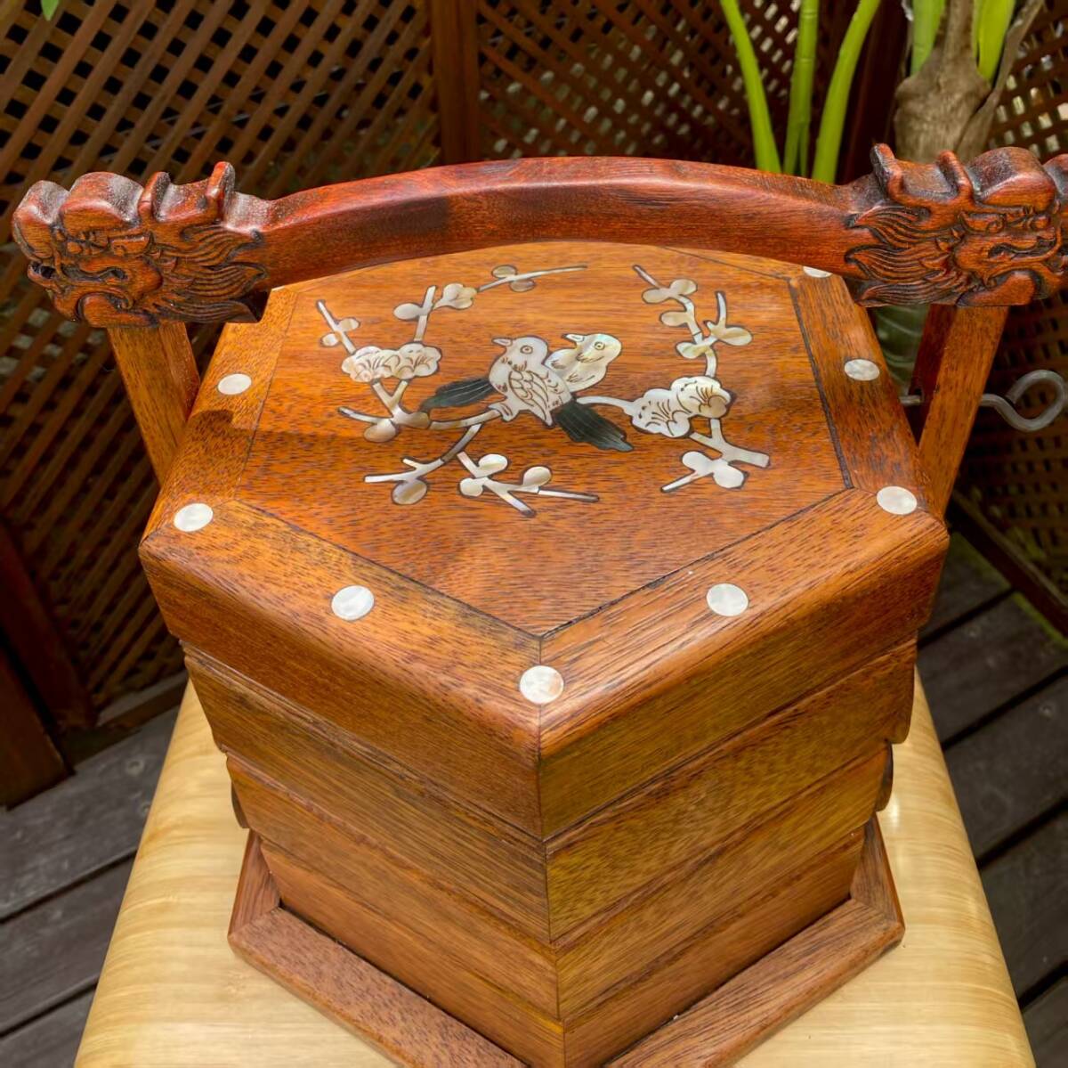 - 古木彫り ◆秘蔵◆清代 王家宮廷御用達・古花梨木象螺鈿多層菓子箱・食箱 古家具 古賞物 古置物 唐物 木製 中国古玩 骨董品MS6-031101