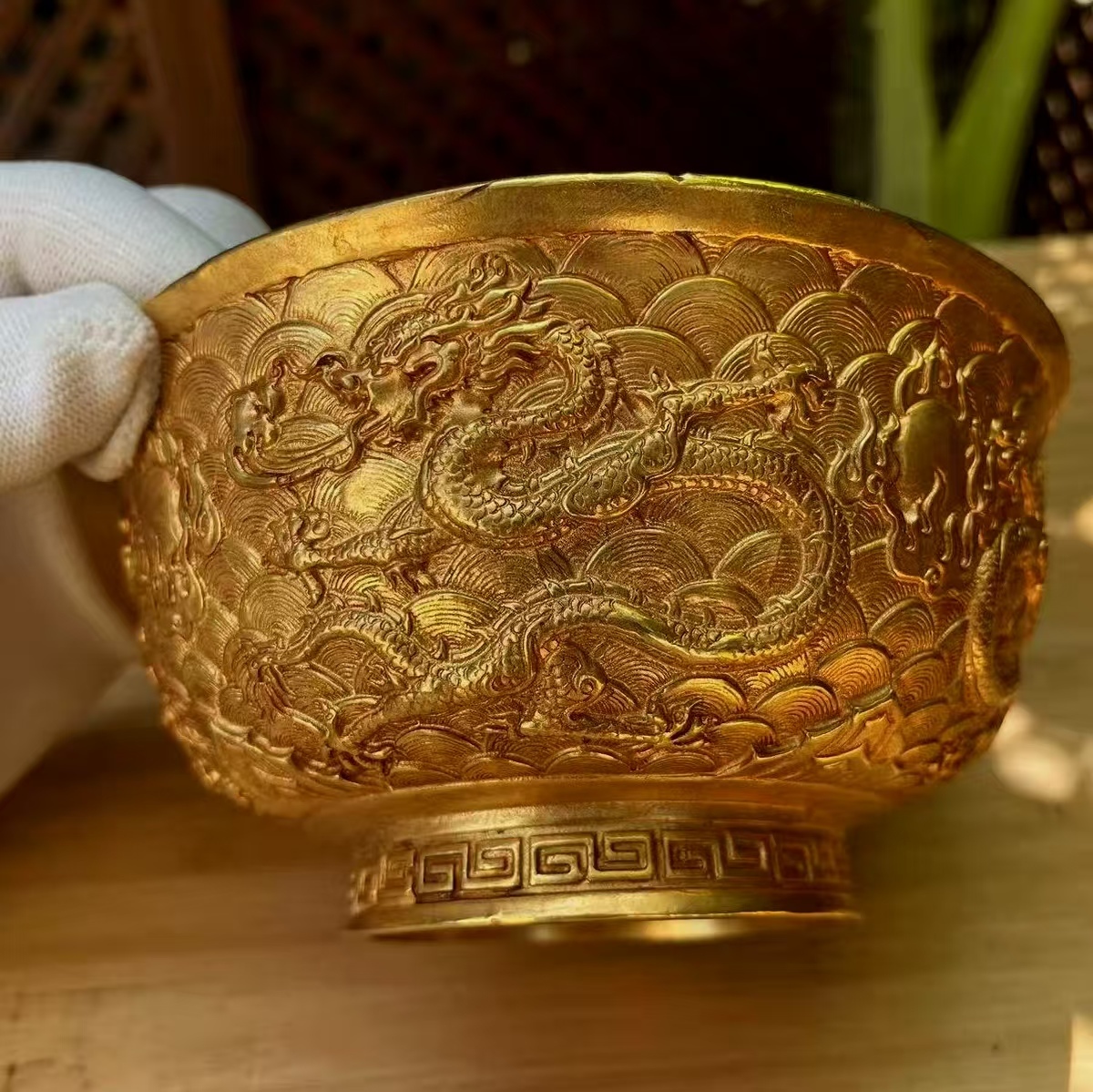 - 茶碗 秘藏 清時代 乾隆年制 銅と金の双龍茶碗 銅製 仏教古美術 廃寺旧蔵 廃寺買出品 古置物 中国古玩 骨董品 細密細工MS6-031102